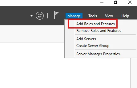 - From Server Manager on my Windows Server, under Manage let’s select Add Roles and Features