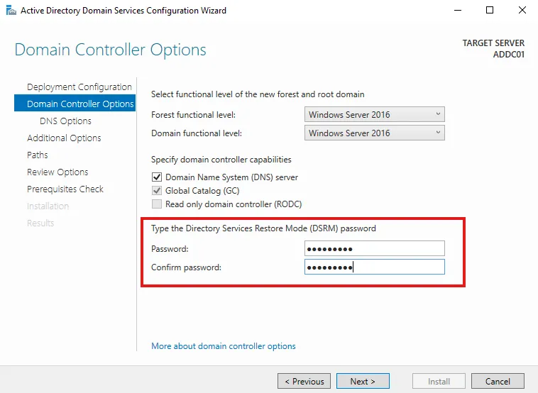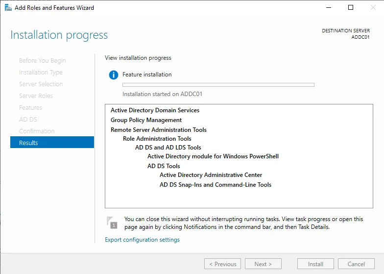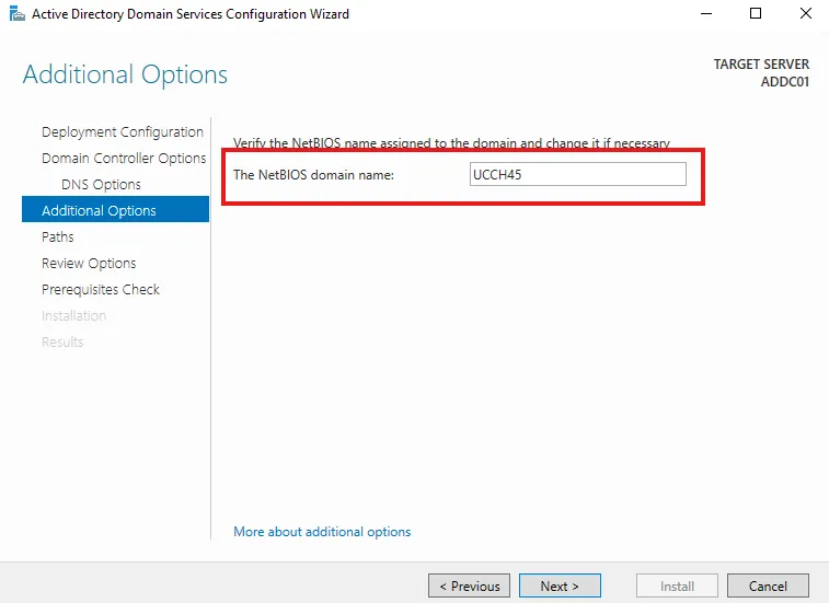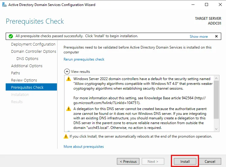 - Review the options selected and wait for it to do a prerequisites check. Click on Install