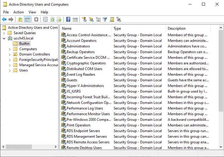 Builtin under my domain contains groups that are automatically created by Active Directory.