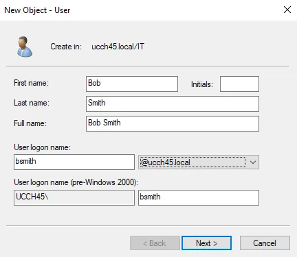I’m simply naming it IT. I can see the newly created OU now under my domain. I can right-click and add a new user inside the OU now.