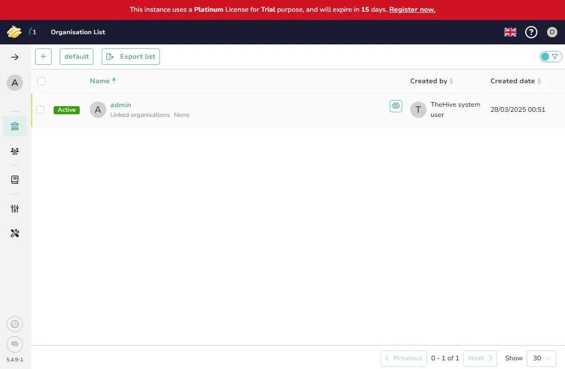 Username: admin@thehive.localPassword: secretI can see the following after logging in.